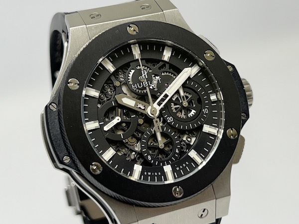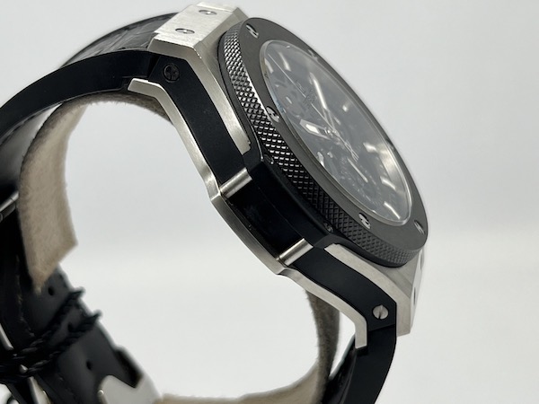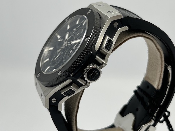 男錶,Cal.HUB4214 自動機芯,時分秒日期顯示;計時碼錶。
