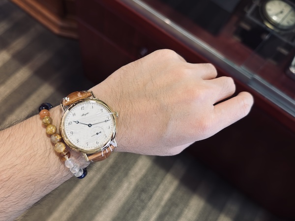 此外,寶璣式藍鋼指針修長的線條亦為開闊大方的面盤增添雅緻氣息,而錶側的錢幣紋與實心背蓋周邊的手工機刻雕花,則營造出細節豐富的復古氛圍,也讓 5140 在功能相對簡單的前提下,成功將目光邀請到出色的工藝手法與細節處理上。