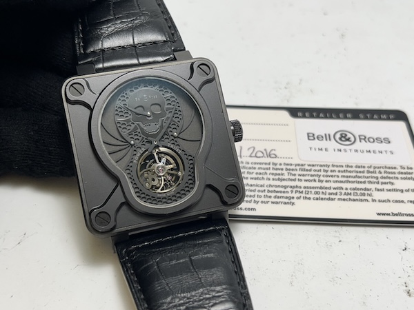 原裝鱷魚皮錶帶& DLC 鈦合金錶扣,原廠 2016 年 AD 保證書。品相九成五新以上。