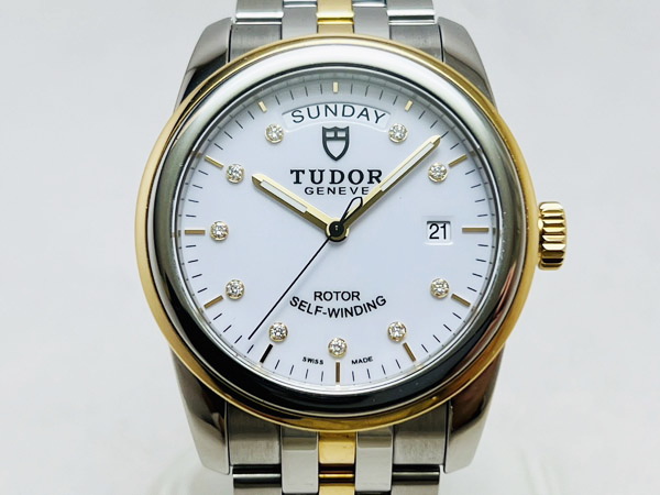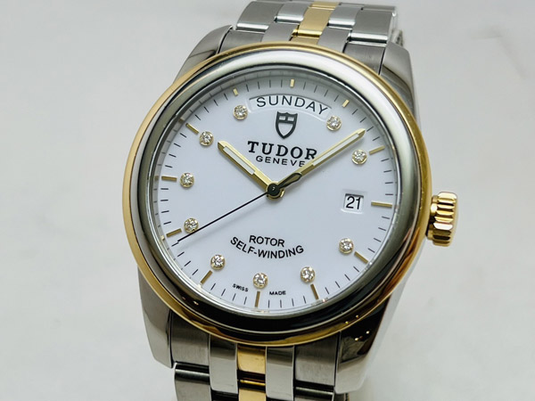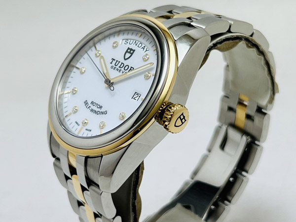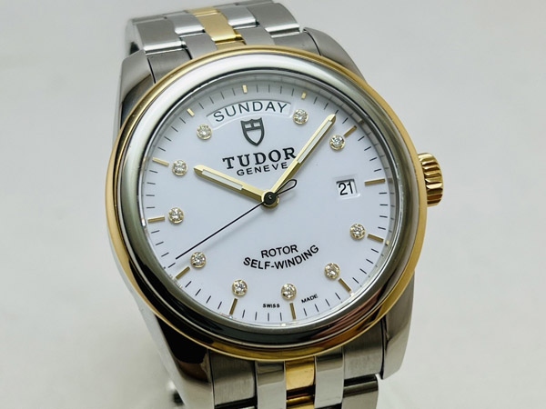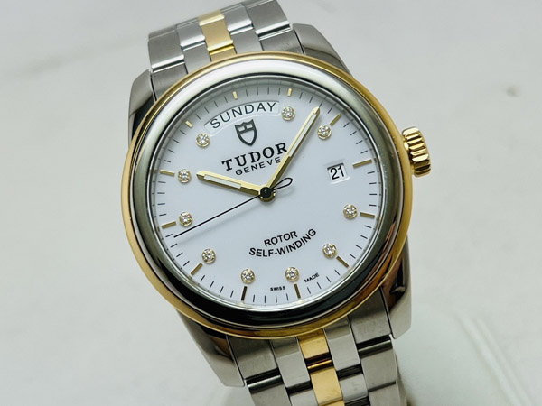 不鏽鋼 & 18KYG. TUDOR 56003 Glamour Date Day 原廠鑲嵌 鑽字時標 39mm.