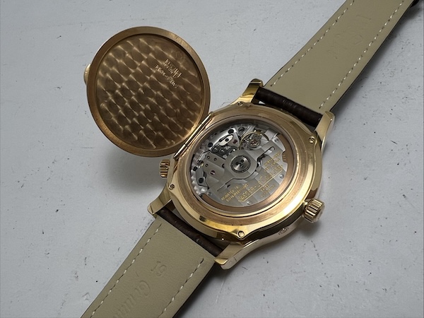 Unisex. Cal.929/3 自動上鏈,時分秒針日期指示,動力儲存指示。第二時區指示,世界時間顯示,日夜變換顯示。掀蓋設計。