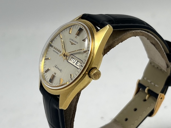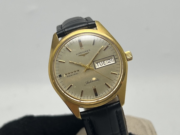 誕生於 1958 年末,浪琴定位其為高級運動款錶的 “五星上將” 系列,滿滿風味的款式,透過當時之設計語言表現典雅不過度運動款的感覺,豎拉琴弦般線條狀銀面盤、帶黑色鑲條時標,佐以浪琴飛翼沙漏錶標誌和海軍五星上將星號,此枚原廠龍頭上 Longines 刻印明顯,沒有因時間留下太多風霜,五星上將能文能武,通常錶如其主。