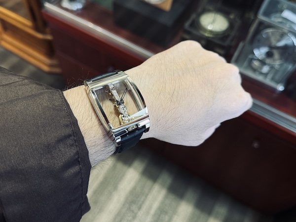 21 世紀全新金橋錶已由 80 年代的原創金橋錶典雅修長的身影蛻變成更摩登現代的外觀,18K 金製成的長橋式機械機芯,手刻上精緻的漩渦式花紋,微型齒輪直線排列,黑金材質鏤空柳葉指針,機芯設計如同漂浮在無重力空間中的一件精雕藝術品。