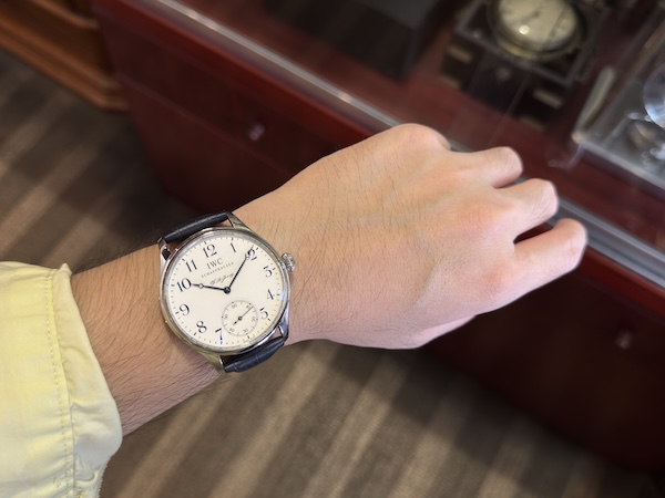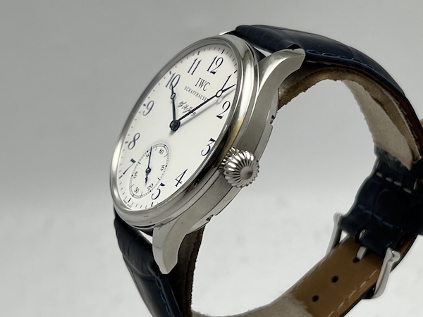 葡萄牙系列腕錶的經典設計,源自 1930 年代,當時就已領先時代;特色包括大尺寸錶殼、簡潔的阿拉伯數字時標、纖細的柳葉指針,以及鐵道式分鐘刻度圈。