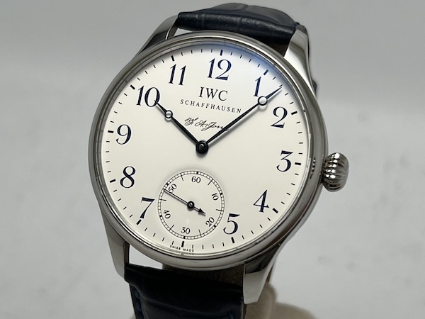 這款腕錶為紀念 IWC 創辦人,於 2005 年推出,全球限量 3,000 只不鏽鋼款。錶面 12 點鐘位置印有創辦人簽名,內部搭載具有歷史意義的手動上鍊 98290 “Jones 機芯”,具獨特打磨修飾與 46 小時動力儲存。