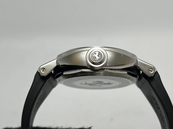 在功能上,本款搭載自動上鍊機芯並配置日期窗與小秒盤,實用且容易上手。FER002 在外觀處理上刻意移除了 Luminor 系列常見的錶冠護橋,改以獨立錶冠做為操作介面——這種設計讓整體輪廓更接近賽車儀表風格,也讓上鍊與調校時的手感更直觀、順暢,而其特殊的鎖入設計也有別於一般款式,縮短操作時間外,更顯對此型號的尊重與別出心裁。