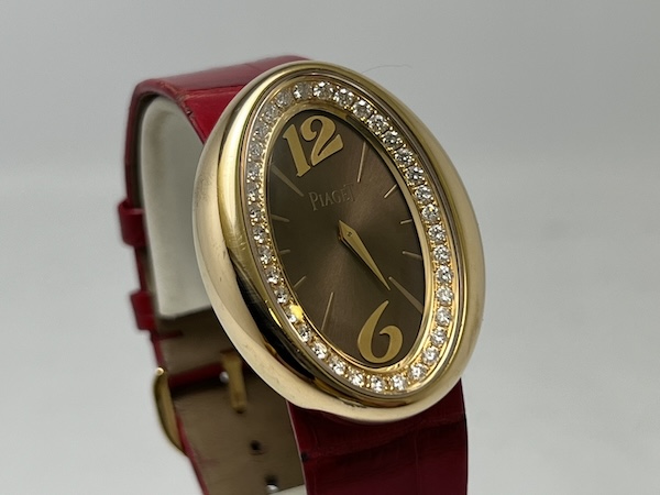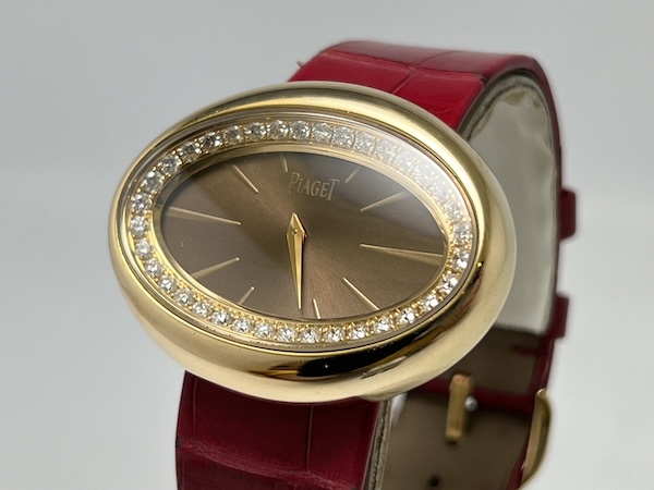 伯爵對於取悅女性之道可謂博古通今,原廠鑲嵌三十六顆共重 1.1 克拉的全美頭段等級鑽石黃金錶圈與巧克力面搭配甚好,其旋轉式錶圈設計滿足喜好多變的風情萬種女性;讓您一鴨三吃之外,一錶也能三戴以上。 |