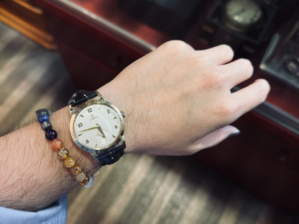 這是一枚 1950 年代中後期經典紳士手動上鍊歐米茄的絕佳型號,配備了 36 毫米的大尺寸 14K 黃金錶殼,且狀態完全原始、未經翻新也未曾動過。