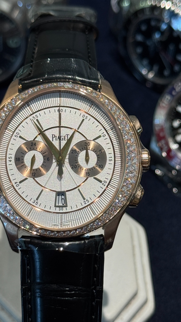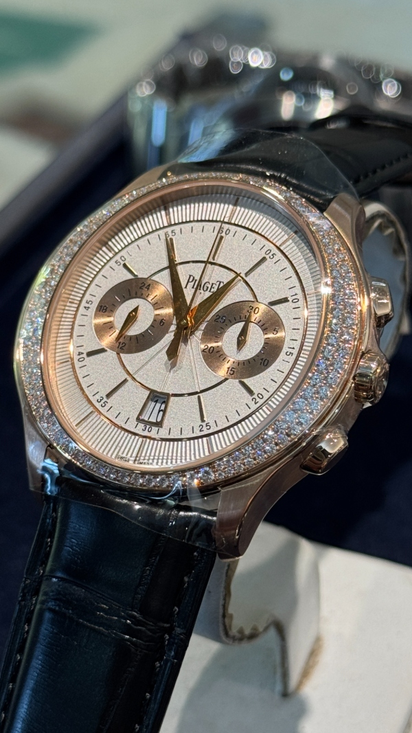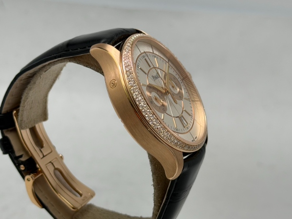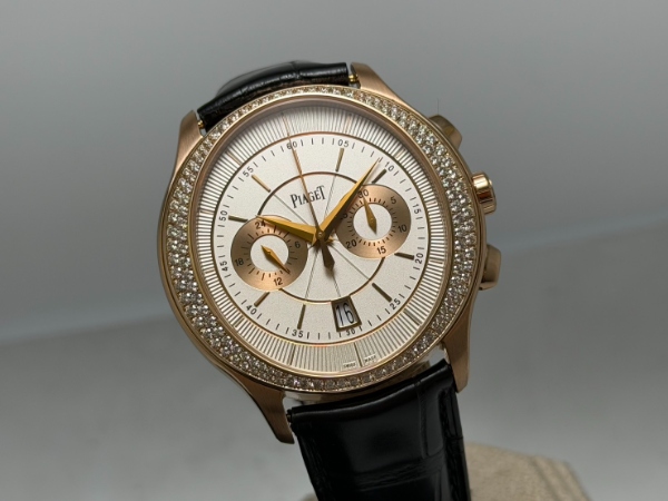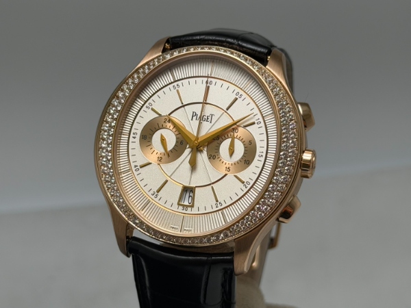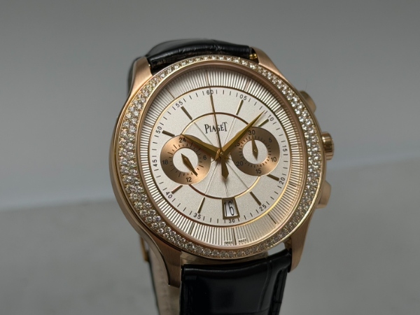 18K Rose Gold. Black Tie G0A39115 Factory Diamond Set Chronograph. 43mm.