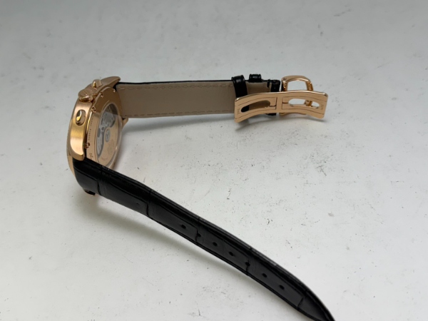 Custom calfskin strap & original 18KRG DP buckle. Original box & certificate. The condition has been slightly polished like new.