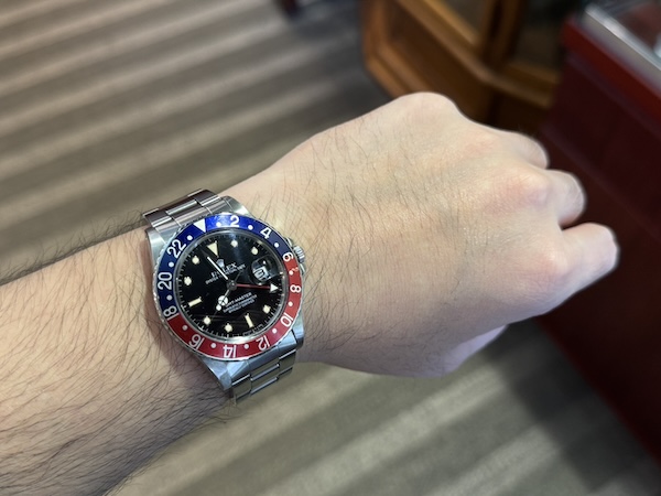 氚氣夜光材質呈現出令人愉悅的蛋殼色,腕錶保留了原有的「百事可樂」錶圈和 78360 蠔式錶鍊,得瑟了都。 |