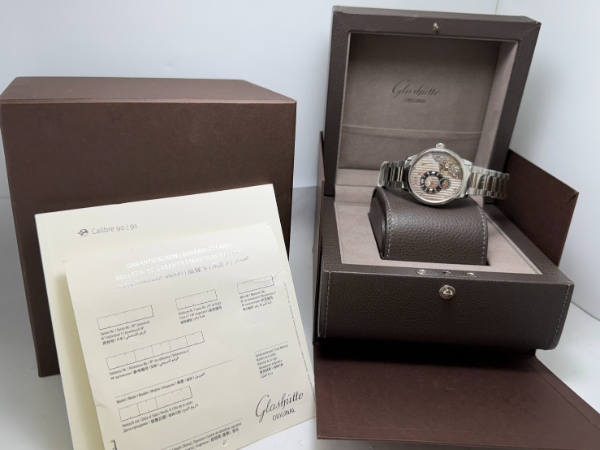原裝不鏽鋼錶帶&折疊錶扣,原廠錶盒&原裝保證書。品相僅稍整至如新,鍊帶部份全新無拋整。