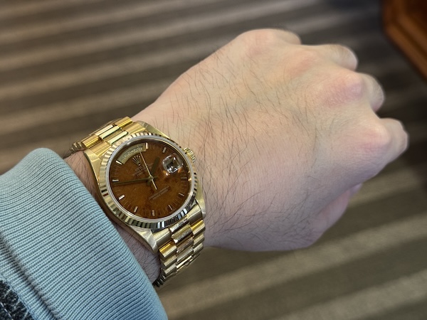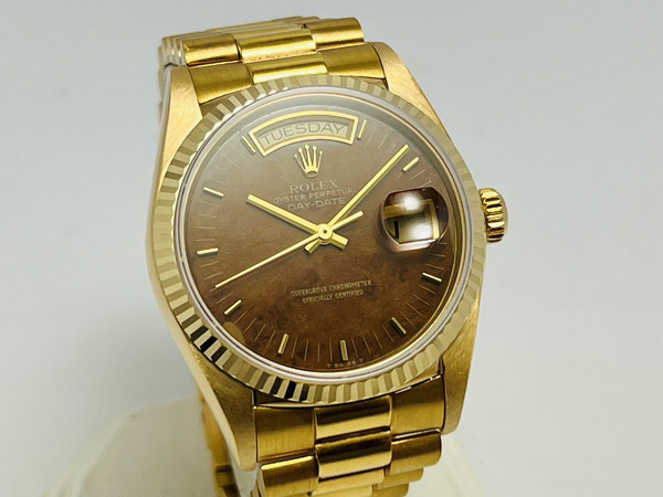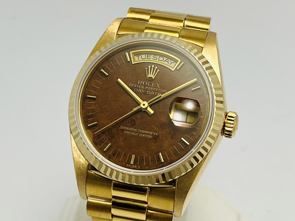 18K Yellow Gold. Oyster Perpetual Day-Date 18038 Birch 樺木 木紋面 36mm.