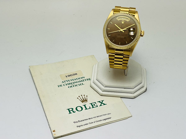 原裝 18K Yellow Gold President 錶帶及摺疊錶扣。原廠 1988 年保證書。品相已稍整至如新。