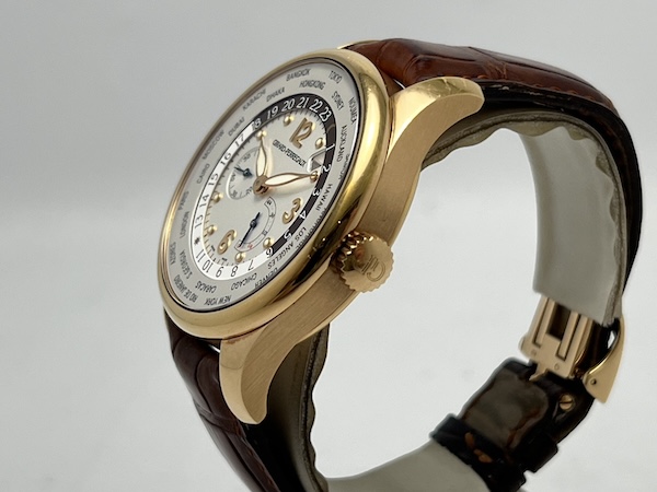 Men's. Cal.GP033G0 Automatic. 時分秒針日期指示,日夜顯示,世界時間顯示,動力儲存顯示。46 小時動力儲存,50m 防水。