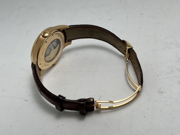 客製牛皮錶帶&原裝 18KRG 摺疊錶扣,原廠錶盒&原廠 2008 保證書。品相九成五新。