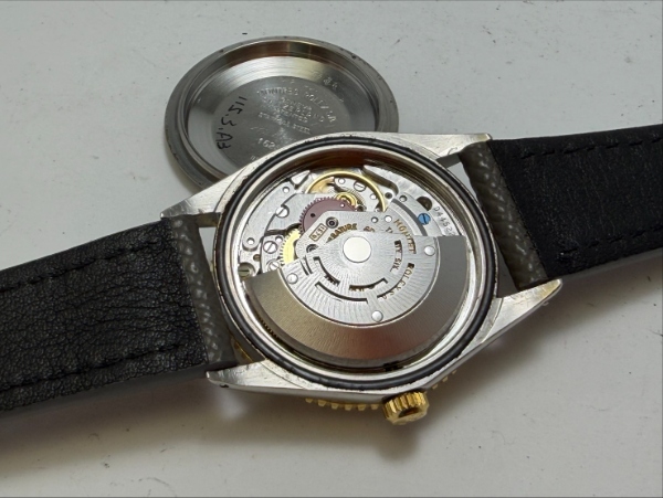 客製小牛皮錶帶及代用錶扣。約 1973 年生產,品相九成新以上。