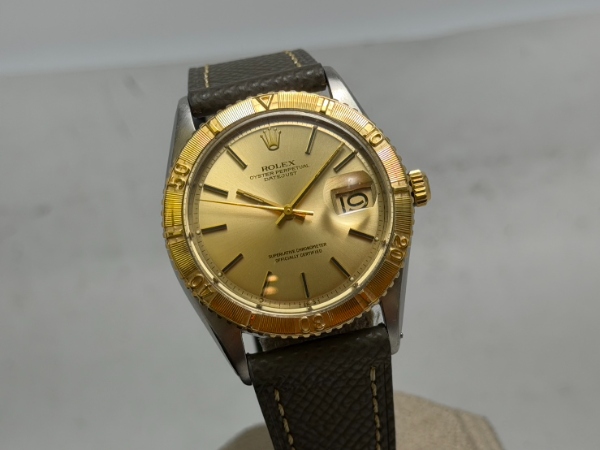 爬山虎屬於 Datejust 系列中的 Turn-O-Graph (在美國則被稱為 Thunderbird)旁系,與其它的勞力士系列相比它產量很少,它既不屬於勞力士的運動款,又跟普通的 Datejust 感覺完全不同味道,標誌性的浮雕數字刻度錶圈由黃 K 金打造,可以雙向旋轉作為計時功能;以上種種特殊性格也讓喜好與眾不同的玩家愛不釋手的種種誘因之一。