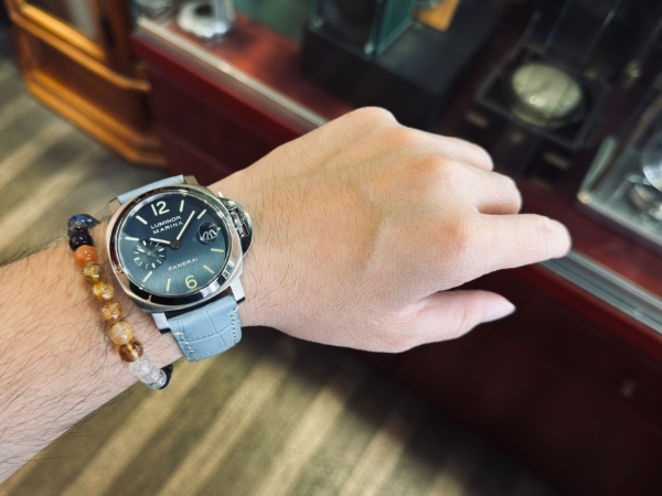 雖然沛納海以大錶徑聞名,但 40mm 的 Luminor(通常搭載 Valjoux 7750-P1 改裝機芯,通常啦)在佩戴感上非常平衡,特別適合搭配西裝,不會像 44mm 或 47mm 那樣卡住袖口,其實老實說也更適合亞洲人手圍尺寸。 |