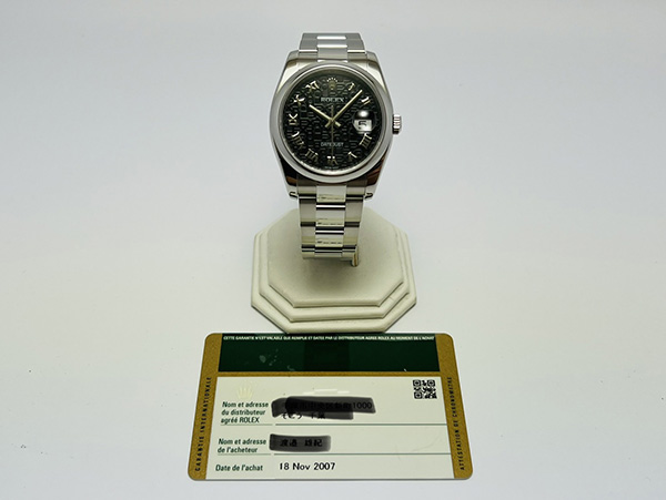 原裝 SS Oyster 錶帶及摺疊錶扣。 "Z" 字序號,防偽內圈。2007 年原廠保證書。品相已稍整至如新。