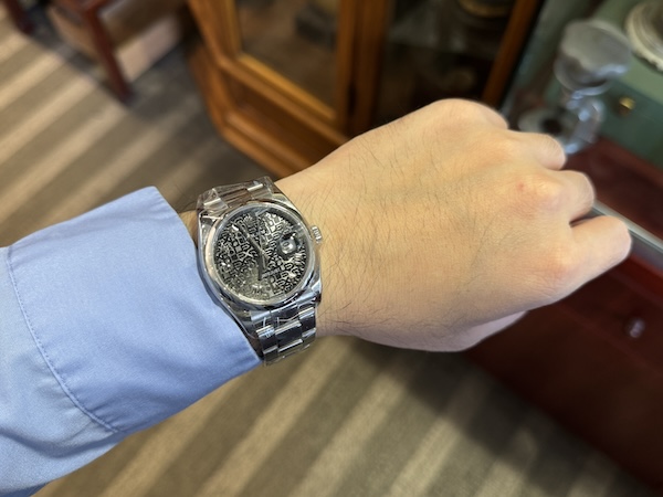 勞力士所設計經典電腦紀念面加上較少有在勞力士各系列型號所配置的羅馬數字時標,聽起來雖然是兩個相對還算可以在市場瞧見的設計,但透過黑色霧面及亮面顏色上的花樣與 18K 白金製成之貴金屬材質時標的搭配,折射出淡雅光澤,整體典雅的一致性完成度極高,更是易於辨識的著名腕錶。 |