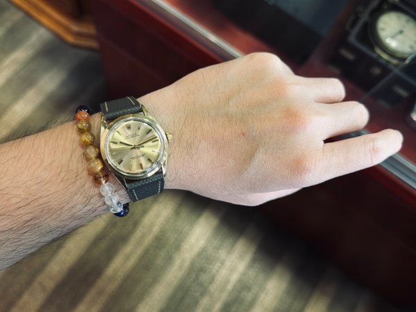 經典的 34mm,這比大家熟悉的 Datejust (36mm) 或 Submariner (40mm) 略小,是早期優雅正裝錶的標準尺寸,非常適合襯衫袖口,就像 007 標配的 Walther PP(Or PPK)一樣,低調又優雅的殺手。 |